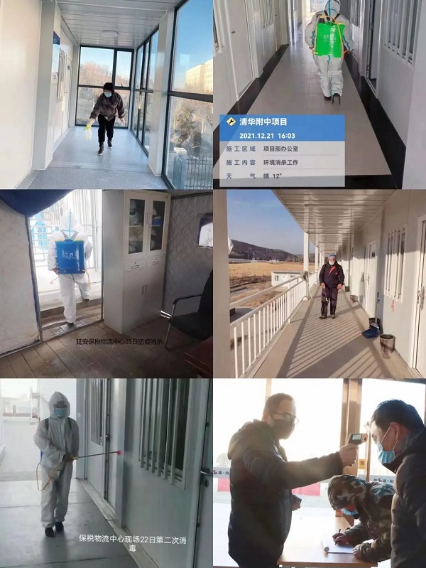 第二工程公司組織全體職工開展聯(lián)防聯(lián)控工作,構(gòu)筑起抵御疫情的嚴(yán)密防線。做好員工日常掃碼登記測溫、辦公及餐廳區(qū)域消殺工作。積極主動在各類線上平臺傳播正能量,宣傳病毒防范知識,及時給集團上報每日防疫工作情況。各項目部對本項目的防疫情況進行自查,對辦公區(qū)及施工現(xiàn)場堅持做到每日三次全面消毒,組織項目一線人員進行核酸檢測,確保全方位扎實做好疫情防控工作。