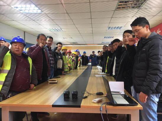 會上,全體人員觀看陜建安全警示教育片《生命之鑒》。全體人員起立進行安全宣誓:一定遵守安全規(guī)定,時刻注意安全,聽從指揮、遵章守紀,規(guī)范施工,不蠻干、不冒險,不留隱患、不出事故,為我的生命健康負責(zé),為我的妻兒家庭負責(zé),以實際行動確保安全生產(chǎn)。